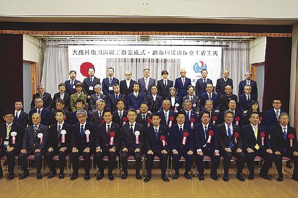 中部地方整備局天竜川上流河川事務所は25日、大鹿村塩川床固め工群の完成式、鹿塩川渓流保全工の着工式を大鹿村交流センター(長野県大鹿村)で開いた。國友優国土交通省水管理・国土保全局砂防部長や森本輝中部整備局長、新田恭士副知事、熊谷英俊村長、地元関係者ら約100人が出席。事業の進展を祝うとともに、今後の工事の推進を祈念した。 國友部長はあいさつで「伊那地域では過去から土砂災害が多く、砂防事業に取り…
