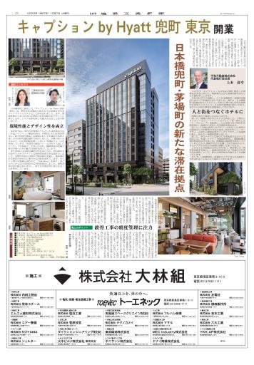 平和不動産が東京都中央区で開発を進めてきたホテル「キャプション by Hyatt 兜町 東京」が開業した。同社が日本橋兜町・茅場町地区で進める「日本橋兜町・茅場町再活性化プロジェクト」の一環で、建物は地下1階地上12階建て。3~12階の柱・梁の一部を木造化する「木造ハイブリッド構造」を採用した。全195室の客室には兜町の歴史や文化に着想を得たアートやイラストを設置し、滞在中も街とのつながりを感じる空間に仕上げた。同ホテルを核として、周辺地域のさらなるにぎわいに貢献する。設計は三菱地所設計、施工は大林組がそれぞれ担当した。