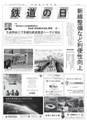 10月14日は、「鉄道の日」。1872年の10月14日に日本初の鉄道が東京・新橋~横浜間に開業したのを記念し、その誕生と発展を願って制定された。新線建設や駅整備などを通じて、私たちの暮らしは利便性が高まっている。鉄道に関する話題を集めた。 8面 渡邊良首都圏新都市鉄道社長インタビュー 9面 首都圏で進む鉄道新線・延伸計画 10面 3Dプリンティングで鉄道施設を建設 11面 加速するホームドア整備 12面 地方鉄道の課題 13面 首都圏主要民鉄の本年度事業計画 (10月14日付、7~13ページ)