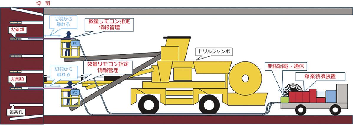 大成建設も山形県の施工現場で、全ての爆薬を機械装填した試験発破に成功した。日油が開発した無線電子雷管の「ウインデットIIシステム」と、大成建設が保有する無線電子雷管など爆薬の機械装填装置「T-クイックショット」を融合。無線電子雷管を含む爆薬の供給から装薬孔への装填に至る全工程を機械化した。