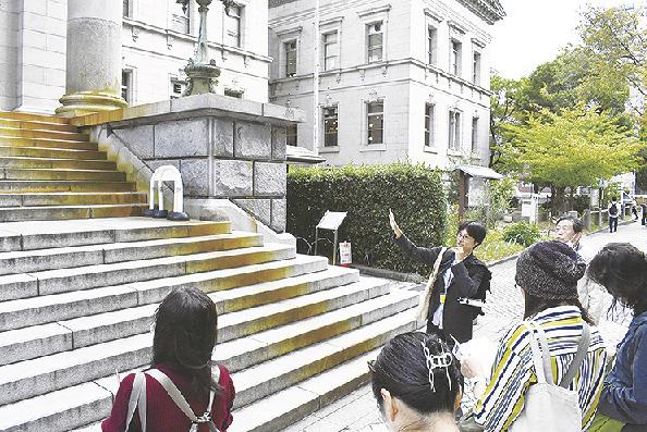 日本建築協会(指田孝太郎会長)は25日、大阪市中央公会堂(中央区西心斎橋)を出発し、中之島を中心に大大阪時代や現代の建築を巡るスペシャルツアーを開催し、33人が参加。一行は3グループに分かれ講師の説明を聞きながら、大阪府立中之島図書館などの建築群を見学した。