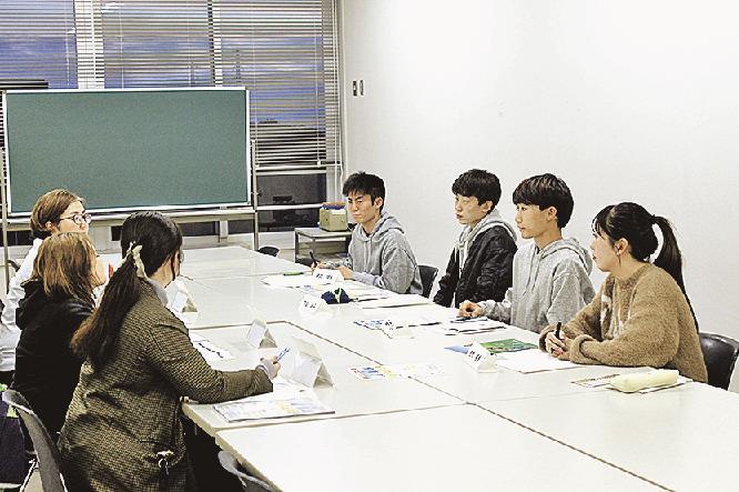 参加したのは工学部社会基盤学科の2、3年生13人。チーム“愛”は公務員、ゼネコン、建設コンサルタントに分かれ、学生の質問に答えた。学生からは「公務員と道路の仕事が結び付つかない」「建設コンサルタントはどんな仕事なのか」「公務員とゼネコンはどちらが給料がいいか」「サービス残業はあるか」など率直でさまざまな質問が出され、チーム“愛”のメンバーは丁寧に答えていた。また「勤務地や給与、福利厚生など同じ業種でも会社によって違いがある。就職前にできるだけ多くの会社を訪れてほしい」とアドバイスした。