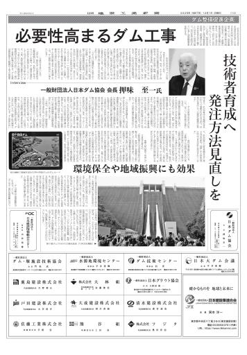 治水や利水などさまざまな効用のあるダムに対する社会的関心や期待が高まっている。気候変動の影響で豪雨や渇水の頻度が高まり、ダム整備の効果を再認識する機会も増えた。日本ダム協会の押味至一会長にダムの有用性についてインタビューしたほか、同協会の第45回ダム建設功績者表彰受賞者、本格運用から四半世紀を迎える宮ケ瀬ダムに見るダム建設の魅力、国内各地で展開されているダム建設整備事業を紹介する。 (12月1日付、10~13面)