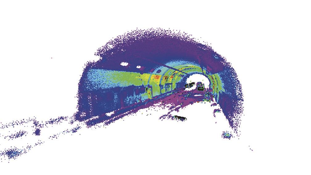 検証ではロボットが自律歩行で取得した点群データと、3Dスキャナーで手動測定した点群データを比較した。坑口から約20メートル地点のトンネル幅で、20ミリほどの差に収まった。