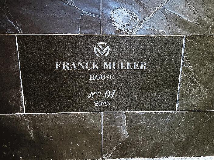 「角地のため、建物を大きく立派に見せたかった」と吉川常務は話す。外壁に段差を設け、立体感を強調。下部にはフランク ミュラーの監修を証明する銘板も設置した。