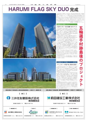 東京都が施行する晴海五丁目西地区第一種市街地再開発事業で建設した超高層50階建て1455戸のツインタワー分譲住宅「HARUMI FLAG SKY DUO」が完成した。三井不動産レジデンシャルを代表企業に11社で構成する特定建築者が、東京2020オリンピック・パラリンピック選手村跡を含む約13haの広大な土地に5632戸の分譲住宅・賃貸住宅、商業施設の計24棟などを建設する「HARUMI FLAG」エリアで最後のプロジェクトとなる。2棟のうち、SUN VILLAGE第二工区の設計を三菱地所設計と前田建設、施工を前田建設が担当。PARK VILLAGE第二工区の設計を日建設計と三井住友建設、施工を三井住友建設が担当した。 (写真提供=三井不動産レジデンシャル)
