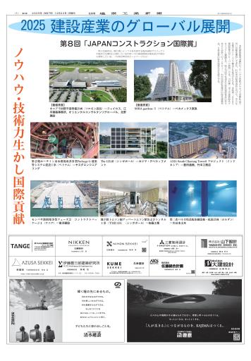 本邦建設産業は優れたノウハウと技術力によって国際社会で高い信頼を獲得してきた。わが国の経済成長に向けて、さらなる質の高いインフラ輸出にも期待がかかる。本特集「2025建設産業のグローバル展開」では、川村謙一国土交通省海外プロジェクト審議官や、設立70周年を迎えた海外建設協会の佐々木正人会長へのインタビュー、わが国設計事務所の海外建築作品、日系企業の海外現場などを紹介する。(別刷り特集、全14ページ)