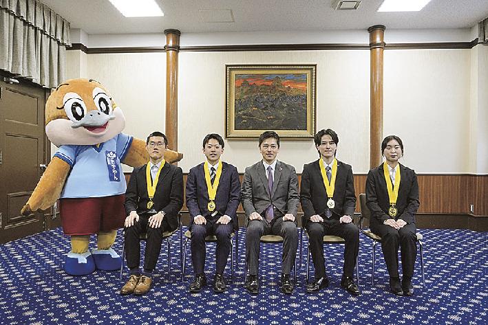 第63回技能五輪全国大会で金メダルを獲得した大阪府選手団の金メダリスト4人が13日、大阪府庁を訪れ、吉村洋文知事を表敬訪問した。建設関連職種では電工職種で優勝したきんでんの安立龍矢選手が出席し、競技内容や国際大会に懸ける思いを語った。