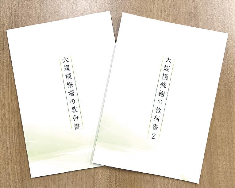 同社は発注者と施工者を「同じゴールを見据えた関係」と捉え、丁寧な説明で信頼を積み重ねている。教科書は技術編と営業編の2種類がある。技術編は修繕のポイントを工種ごとに解説。現場で飛び交う専門用語や各工種の目的も説明している。専門知識がない人でも、工程が理解できるよう工夫。営業編はプレゼンテーションのこつや書類の書き方などを盛り込んでいる。海外顧客との商談では、前もって通訳に読んでもらい、相互理解の助けにする。若手社員からは「いつでも見返せるので、積算や見積もり作成時に疑問点を解消できる」と好評だ。