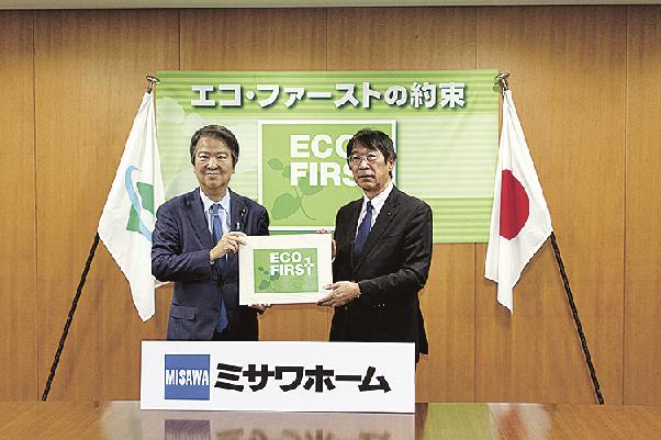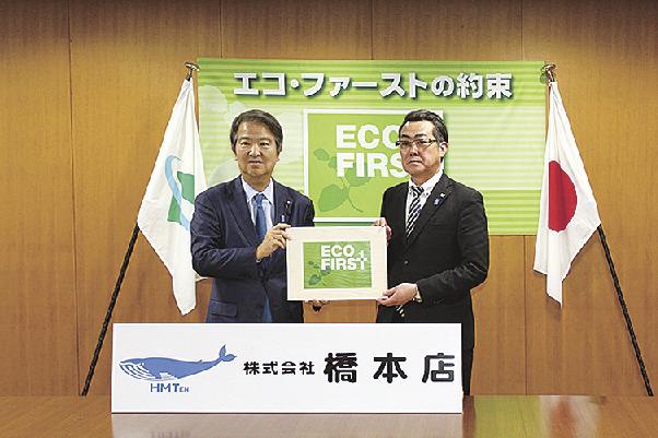 環境省は14日、環境保全の取り組みが優れている「エコ・ファースト」の企業の認定式を省内で開いた。橋本店、古河電気工業、前田道路、ミサワホーム、加山興業、日比谷花壇など新たに9社を認定し、各社が石原宏高環境相に環境保全の方針などを伝え、活動に力を入れることを約束した。石原環境相は「各業界をリードする環境先進企業として環境経営をけん引してほしい」と求めた。認定企業は100社を超えた。
