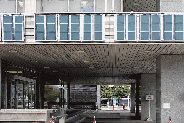 今回の実証は、西庁舎2階バルコニー側面(南側・東側)に計30枚のペロブスカイト太陽電池パネルを設置。発電量は庁内のモニターで確認できる。パネルは取り付け穴なし(ビス用)と穴あり(ボルト用)の2種類を使用する。実証期間は2028年2月まで。