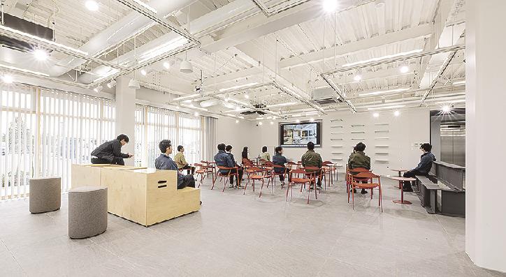 1階には地域交流スペースを設置。市行政や近隣の教育機関との連携、施設見学の受け入れなどで建設業への理解促進と若い世代に魅力を発信し、イメージの刷新を図る。