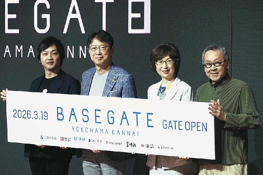 三井不動産ら8者で構成するコンソーシアム「KANNAI8」は12日、開業を目前に控える大規模複合街区「BASEGATE横浜関内」(横浜市中区)の報道機関向け発表会・内覧会を開いた。タワーやホテル、商業棟など全面が公開された。三井不動産の植田俊社長、ディー・エヌ・エー(DeNA)の南場智子代表取締役会長、星野リゾートの星野佳路代表らが参加し、トークセッションなどを行った。施設は一部を除き、19日に開業を迎える。