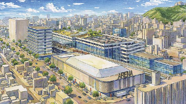 松山市は、JR松山駅周辺の具体的な整備イメージや今後の進め方を示す「松山駅周辺まちづくりプラン」をまとめた。JR四国車両基地跡地(南江戸1、敷地面積約9250平方メートル)に計画する多目的アリーナは、公設民営の場合に5000席で整備費約200億円と想定。2031年度の供用開始を目指す。にぎわい施設と一体的に整備する。