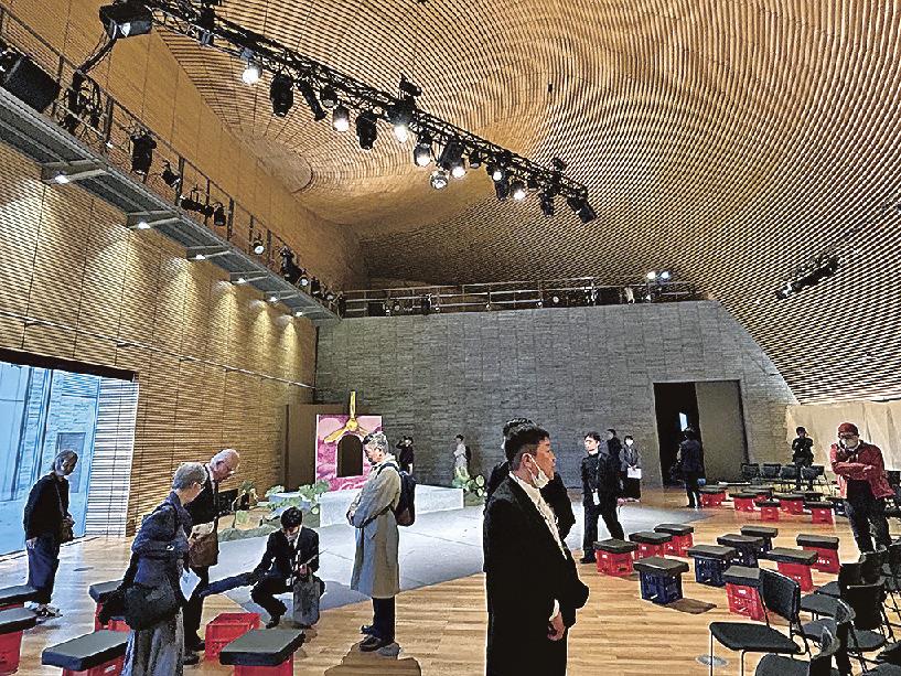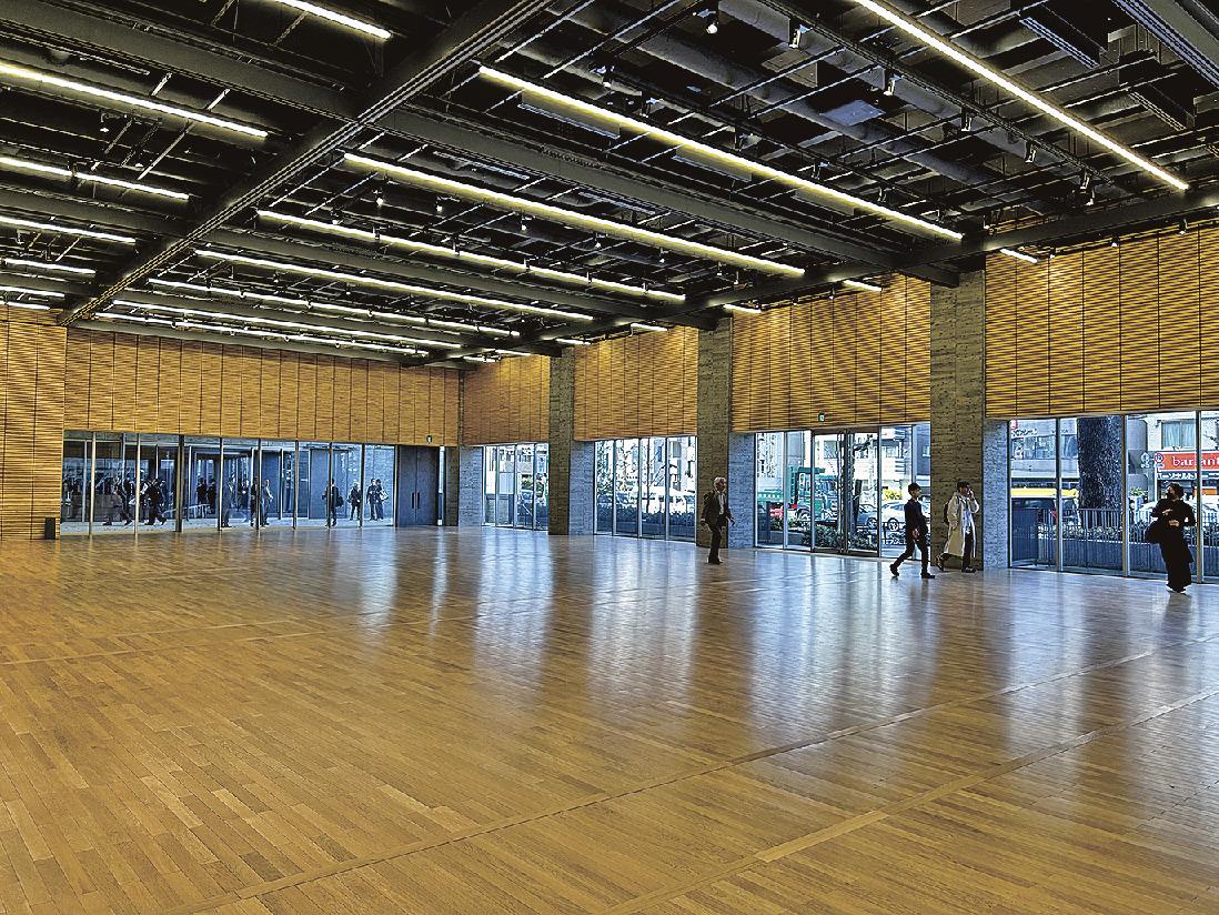 講堂の1、2階は演劇などが可能な吹き抜けのホールとなっている。半円形のドーム天井は、鉄筋をユニット化して製作し、現場で組み立てるトラスウオール工法で整備した。音響を良くするため、天井頭頂部はゴムボールを押したようにへこんでいる。地下には空調機械室やダクトスペースを設けた。