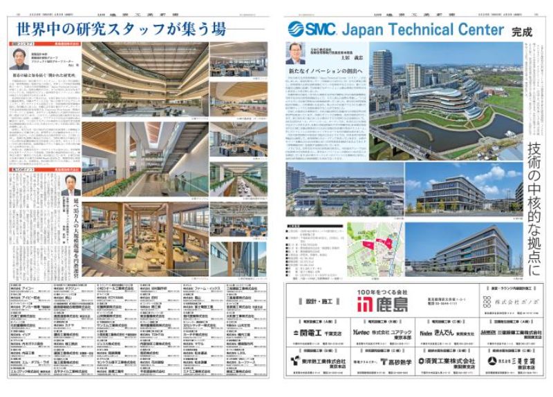 SMCが千葉県柏市の柏の葉スマートシティで建設を進めてきた新たな研究開発拠点「Japan Technical Center(JTC)」が完成した。国内外で高いシェアを持つ空気圧機器メーカーとして世界各国にある同社の技術センターの中核的拠点とする。世界中の研究スタッフがJTCに集い、最先端の技術交流や研究開発力の向上を通じて、新たなイノベーションの創出に取り組んでいく方針だ。施設の設計と施工は、鹿島が担当した。 ◇工事概要 ■工事名称:(仮称)柏の葉キャンパス新技術センター計画新築工事 ■工事場所:千葉県柏市若柴140街区、138街区、132街区 ■発注者:SMC株式会社 ■設計者:鹿島建設株式会社一級建築士事務所 ■施工者:鹿島建設株式会社 ■主要用途:研究所、事務所、飲食店 ■敷地面積:42,793.96m2 ■建築面積:29,337.01m2 ■延床面積:90,840.64m2 ■構造:RC造KIP-RC ■階数:地下1階地上5階 ■工期:2023年12月1日~2025年9月30日 撮影:川澄・小林研二写真事務所(一部除く)