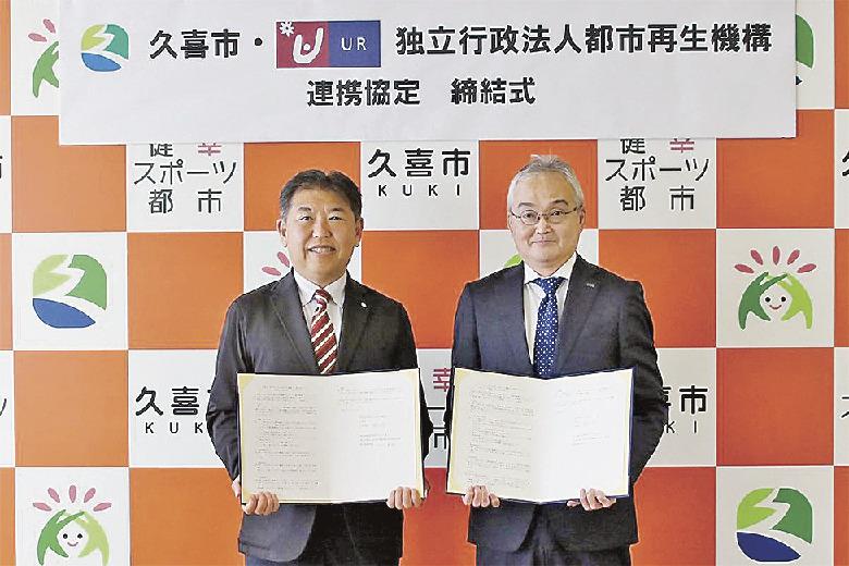 協定では▽都市機構が所有する久喜市内の団地と周辺地域の活性化▽わし宮団地の商店街活性化▽わし宮団地の団地再生事業推進▽多様な世代に対応した居住環境の整備、ミクストコミュニティー形成推進▽災害に強い街づくり-の5項目で、協力していくことを定めた。