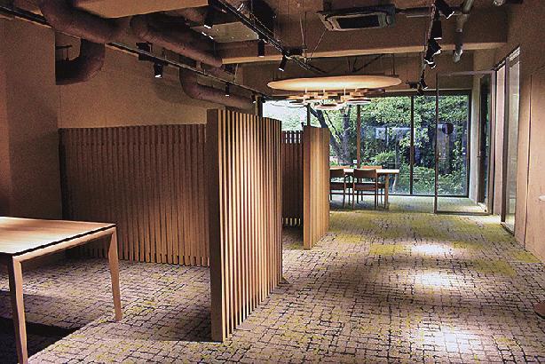 コンセプトは「PLAT(パーク×ラボ×TBW)」。公園に面した立地を生かし、外部と連続する開放的な空間(PARK)、建築を体験的に学ぶ実験的機能(LAB)、チームと個の働き方を両立するチームベースドワーキング(TBW)を組み合わせた。内部には下階に降りるごとに、無機質から自然素材に空間トーンを変化させ、公園へと開いていくデザインを採用。1階には開放的なロビーとミーティングスペースを配置した。