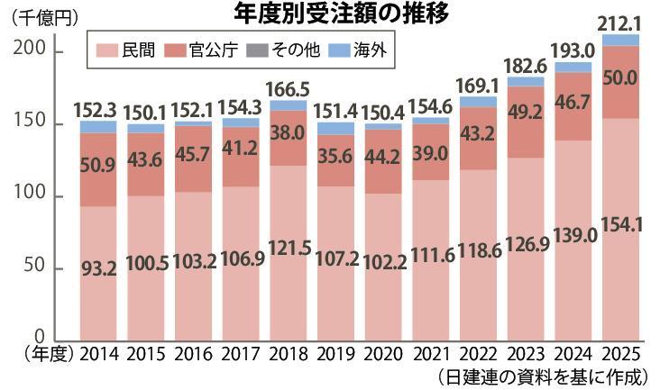 日建連会員/25年度の建設受注、9・9%増/5年連続増、過去20年で民間最高水準
