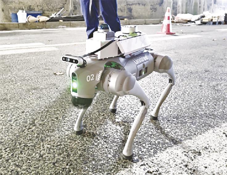 飛島建設は、四足歩行ロボットが自律移動で工事現場を巡回・点検するシステムを開発した。ロボットは写真や映像、3D点群データの取得、双方向の音声通信が可能。担当者は遠隔制御で高頻度な場内巡回が可能になり、施工管理の効率化と高度化に役立つと期待する。10月に同社が施工する高速道路トンネルの補修・補強工事で検証。想定通りに動けると確認した。 新システムは、稼働時間などから市販の電動四足歩行ロボット「U…