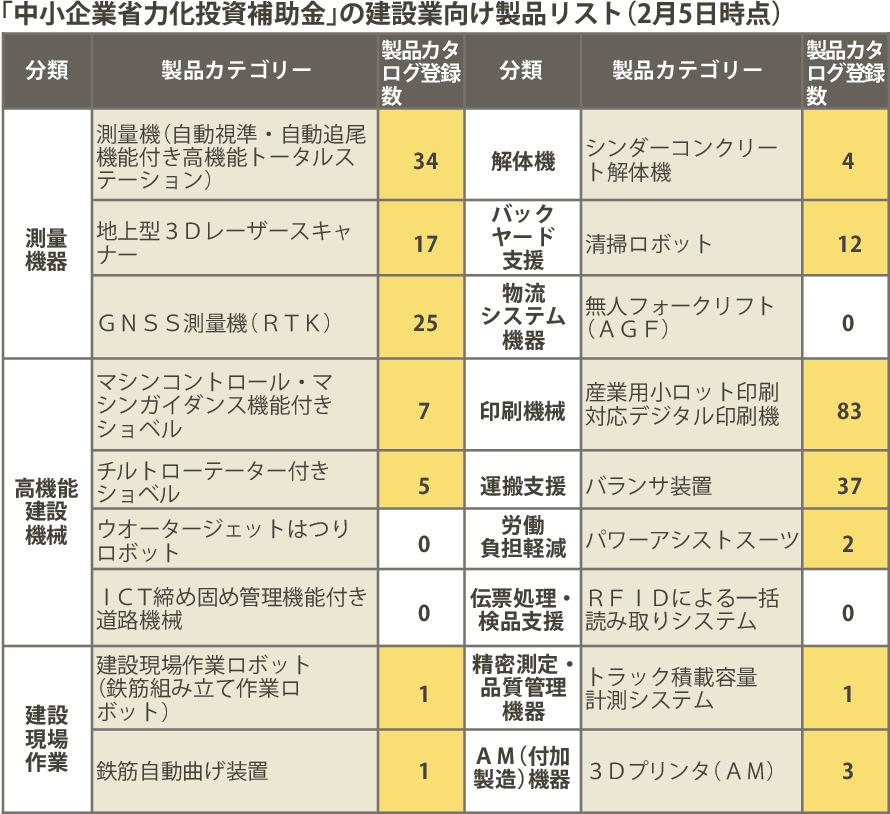 中小企業省力化投資補助金/施工現場製品に活用可能に/ICT建機など登録進展