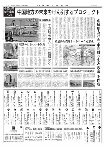 中国地方は東西南北に高規格道路が整備され、高速道路ネットワークの骨格を形成しているものの、山陰自動車道は未整備区間があり、暫定2車線区間も多い。そうした中、中国地方の将来像の指針となる「中国圏広域地方計画」の中間取りまとめ案では重層的なネットワークを形成して圏域内外の対流を促進し、総力戦で強靱な圏域を整備するとした。各地で再開発計画も相次ぎ、新たなにぎわいづくりが進む。