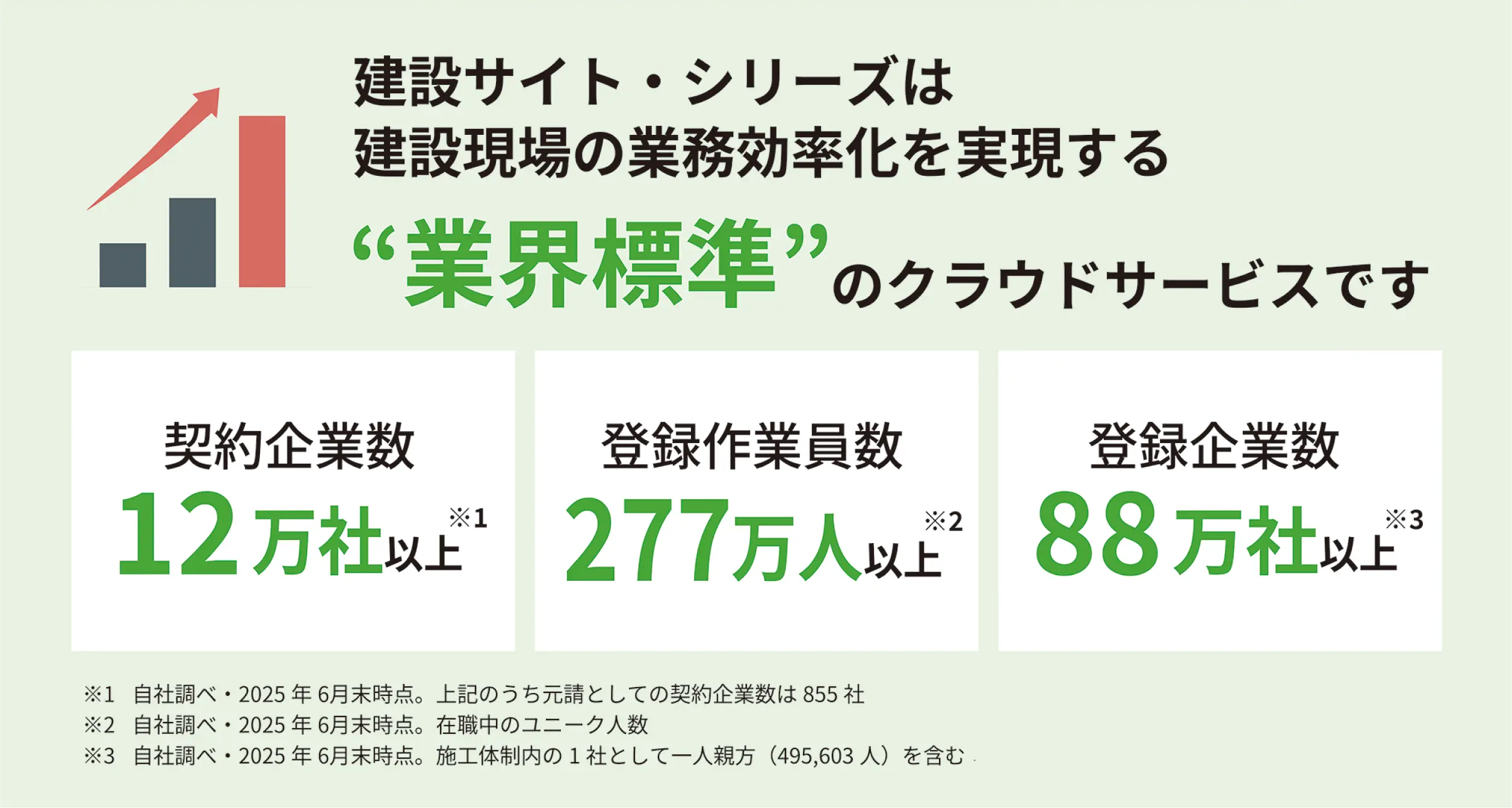 建設サイト・シリーズを利用している元請企業数は12万社を超え、登録されている技能者数は277万人に達している。現場の入退場記録を蓄積する通門管理機能も利用現場が増え、1万現場を突破した。これに伴い、CCUSの就業履歴を蓄積するタッチ数も伸長している。