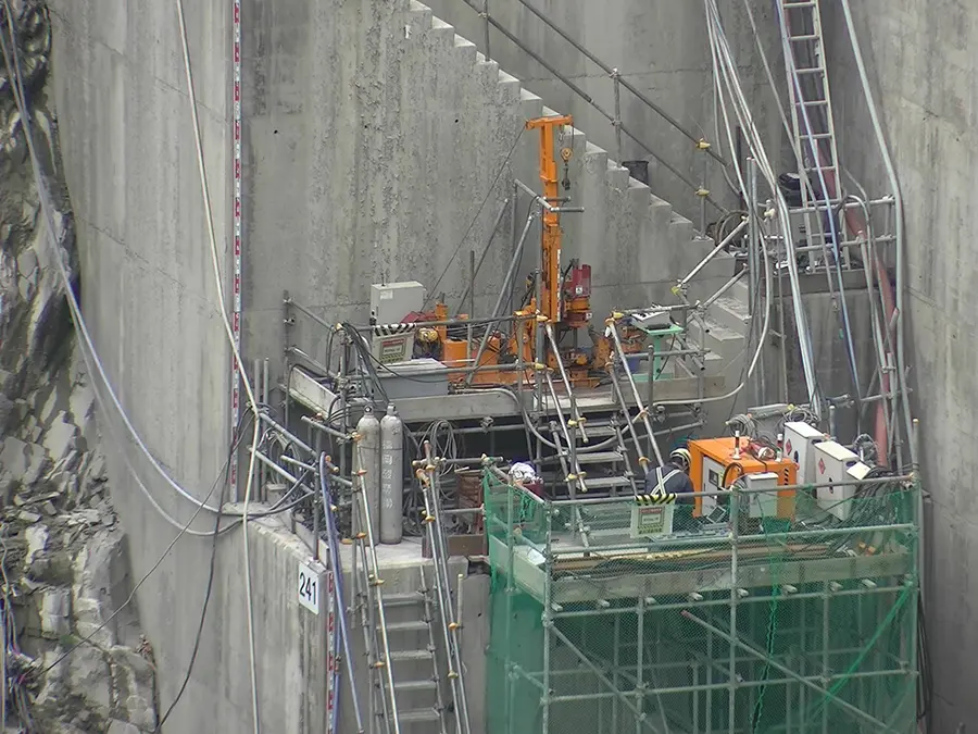 ①管理操作盤のボタンを押すだけで目標深度まで自動で削孔